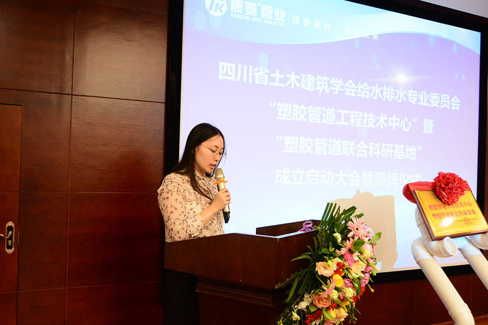 接下來,四川省土木建筑學會給水排水專業(yè)委員會副秘書長龔克娜宣讀了《四川省土木工程學會給水排水專業(yè)委員會“塑膠管道工程技術中心”暨“塑膠管道聯(lián)合科研基地”管理辦法》。