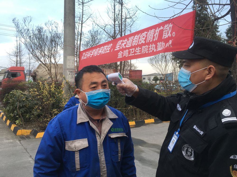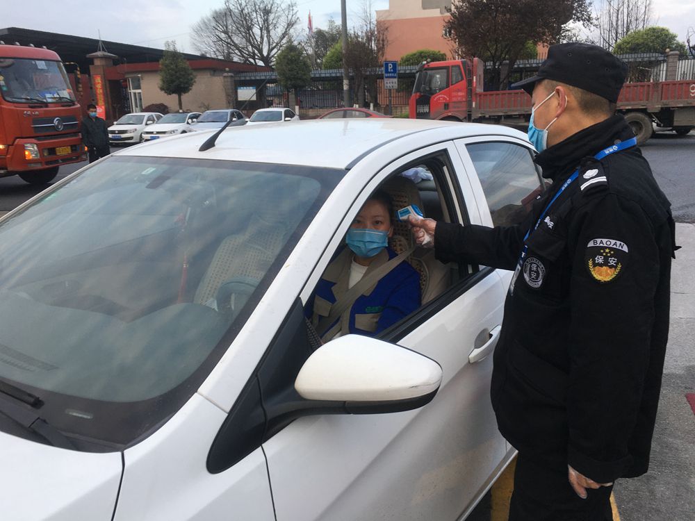 圖為進廠區(qū)前進行體溫測量