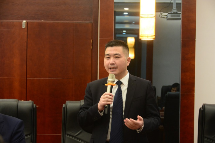 圖為副總裁鄭光鏵歡迎各位領(lǐng)導(dǎo)、專家蒞臨康泰
