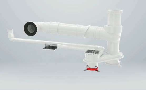 所有橫支管在排水匯集器處共用一個水封,排水器具下方不設(shè)存水彎,所有器具連接均選用彎頭,大大減少排水管道堵塞點?!肮灿盟狻笔钦麄€系統(tǒng)中所有廢水管唯一的存水彎,“共用水封”作為唯一可能的堵塞點,這套系統(tǒng)為此特地設(shè)計了集成檢修口,如果出現(xiàn)堵塞的情況,也可自己輕松完成清通。
