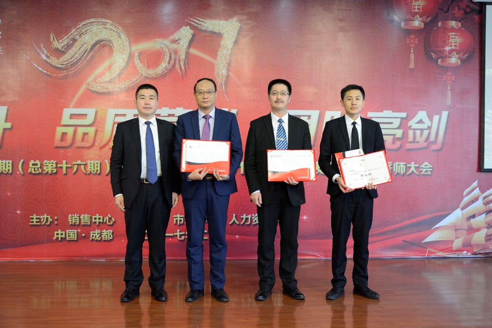 ? ? ? ?為表彰先進(jìn),樹(shù)立典型,進(jìn)一步明確明年的工作重點(diǎn)和任務(wù)。2月11日下午,康泰集團(tuán)2016年?duì)I銷總結(jié)表彰、2017年度動(dòng)員誓師暨母公司2017年度中層以上干部啟動(dòng)大會(huì)隆重召開(kāi)。會(huì)上,銷售總監(jiān)何朝首先作2017年度重點(diǎn)工作部署,并拉開(kāi)營(yíng)銷2016年度評(píng)先樹(shù)優(yōu)表彰序幕,對(duì)2016年度表現(xiàn)突出的團(tuán)隊(duì)和個(gè)人進(jìn)行了大力表彰(名單詳見(jiàn)文末)和激勵(lì),重獎(jiǎng)第一名及表現(xiàn)突出的精英。獲獎(jiǎng)?wù)呱吓_(tái)領(lǐng)獎(jiǎng)并感言,接受大家掌聲,現(xiàn)場(chǎng)激情四溢。在此,感謝營(yíng)銷精英在2016年度的付出與努力,期待更精彩的2017年。