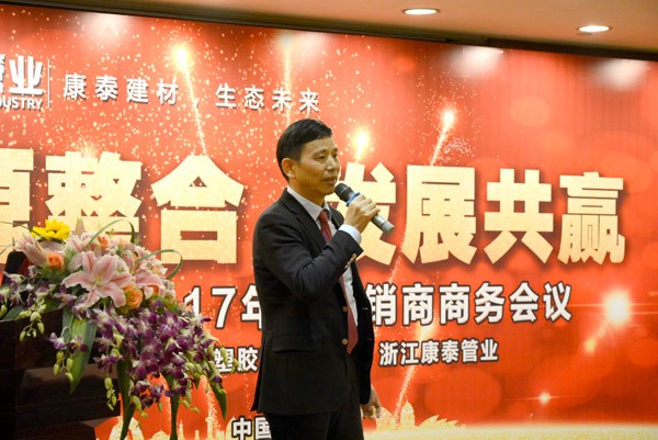 ? ? ? ?林總裁在講話中圍繞2025智能制造、智能化的不斷發(fā)展,以及傳統(tǒng)制造企業(yè)面臨的挑戰(zhàn)等話題,從中國(guó)經(jīng)濟(jì)新常態(tài)和轉(zhuǎn)型升級(jí)的大背景、大環(huán)境,重點(diǎn)回顧了康泰集團(tuán)2016年的取得的成績(jī)、涌現(xiàn)的亮點(diǎn),總結(jié)分析了經(jīng)銷商存在的不足。林總裁表示,2016年度,在市場(chǎng)需求量下滑的情況下,康泰集團(tuán)準(zhǔn)確清晰的實(shí)施穩(wěn)定民建、發(fā)展市政等舉措,積極應(yīng)對(duì)市場(chǎng)挑戰(zhàn)與洗牌,全年基本完成經(jīng)營(yíng)目標(biāo)。為穩(wěn)定民建、發(fā)展市政,資源儲(chǔ)備等后續(xù)發(fā)展打下了良好基礎(chǔ)。林總裁強(qiáng)調(diào),雖然我們?nèi)〉昧艘恍┏煽?jī),但也要認(rèn)識(shí)到自身存在的不足。比如,母子公司資源共享、業(yè)務(wù)挖掘、做寬做深不夠、產(chǎn)品質(zhì)量細(xì)節(jié)提升與保障不足、產(chǎn)品研發(fā)的市場(chǎng)化應(yīng)用性不足、經(jīng)銷商思維轉(zhuǎn)型等問(wèn)題都需要引起重視。2017 是機(jī)遇與挑戰(zhàn)并存的一年,也是大有可為的一年。本次會(huì)議不僅進(jìn)一步向全體經(jīng)銷商傳遞了康泰集團(tuán)的戰(zhàn)略和營(yíng)銷方針,而且也為大家來(lái)年的發(fā)展明確了目標(biāo),指明了方向。