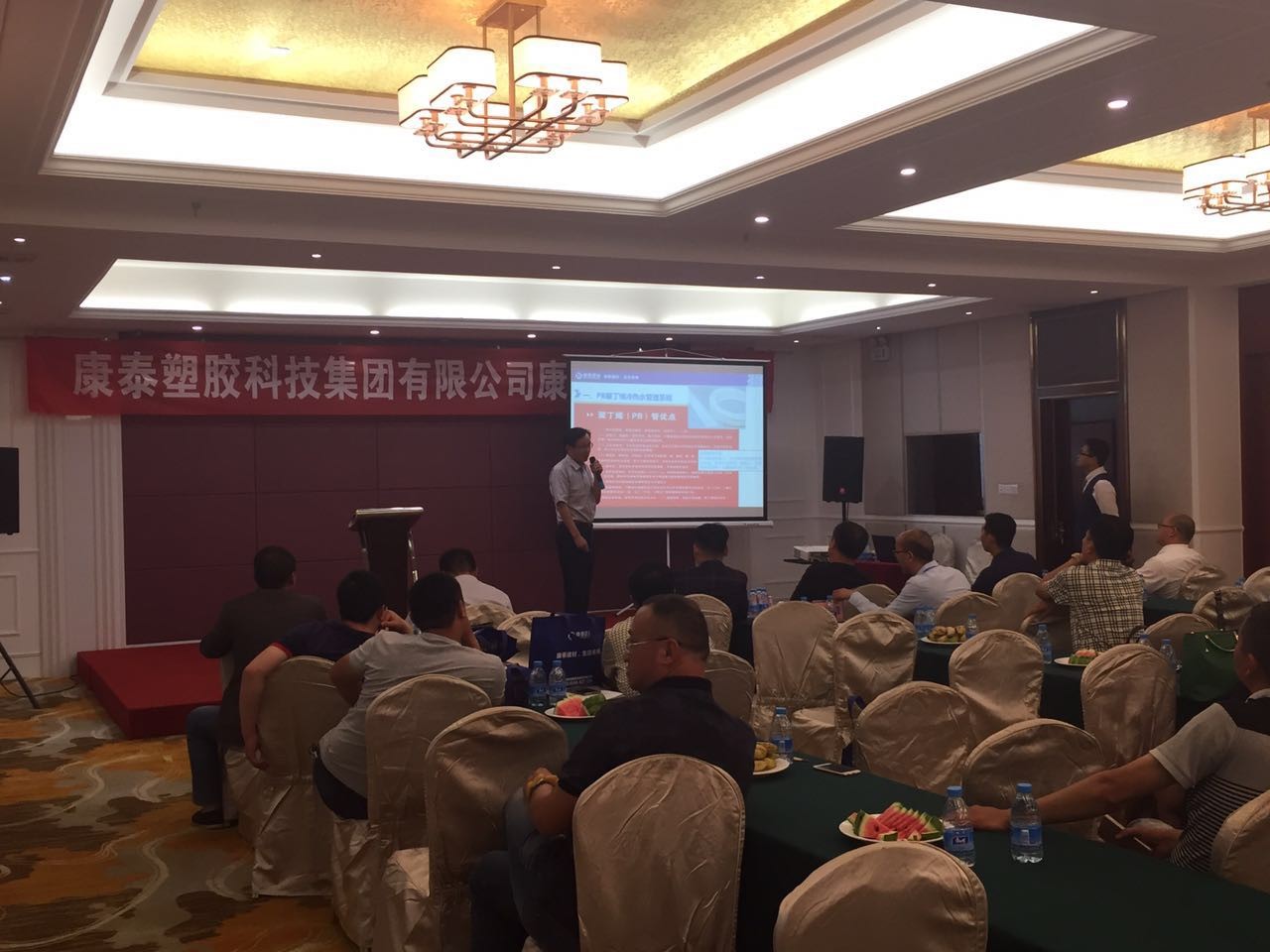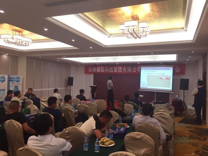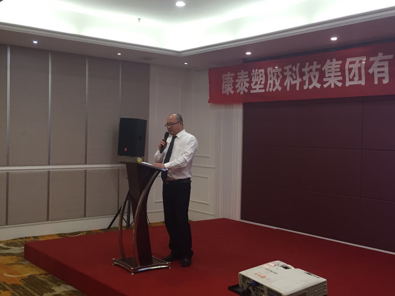 ? ? ? ?會上,康泰塑膠科技集團河南基地生產(chǎn)負責人林化平圍繞康泰的多款新產(chǎn)品的優(yōu)點和特性,從設計理念、開發(fā)背景、技術(shù)特點、產(chǎn)品原料、生產(chǎn)設備、性能對比、實驗分析、應用領域、工程案例等方面作了詳細的介紹。河南銷售分公司總經(jīng)理周建峰通過實際案例向各位來賓介紹了康泰集團的品牌價值及產(chǎn)品銷售理念??堤┊a(chǎn)品商丘總代理梁輝先生也表達了對于康泰集團的感謝以及對康泰產(chǎn)品和商丘市場的巨大信心。