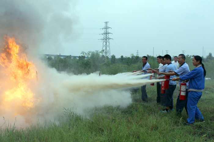 員工在實戰(zhàn)中學(xué)習(xí)滅火器的使用方法