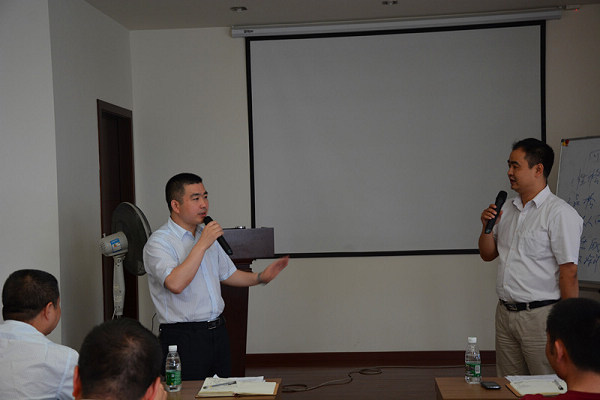 ??? 6月8日,所有參訓人員和講師都無暇享受美好的周末又聚集在了公司開展第二天的培訓,這一天的培訓內(nèi)容以分組討論為主,林總裁親自到場聽取了各個小組的報告并給予指導。這次討論核心在于找出目前營銷團隊中確確實實存在的問題,查找問題存在的原因,并商討解決辦法,期間所有營銷中層領導積極發(fā)言,把自己團隊遇到的困難和面臨的問題訴諸會議,磋商解決對策,小組討論取得了非常實際的效果,把目前營銷團隊迫切需要解決的問題呈上紙面,并給出了詳細的整改方案。