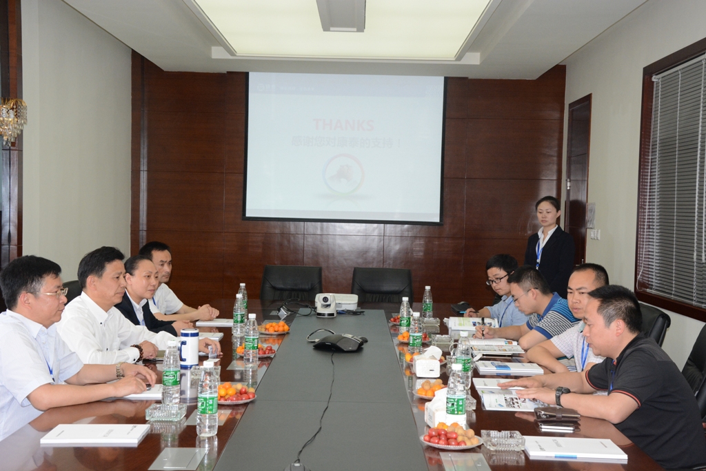 ????? 4月17日下午,四川恒邦集團招采部部長吳強,以及項目部,技術(shù)部相關(guān)領(lǐng)導一行在我公司四川區(qū)域經(jīng)銷商肖淑蘭的帶領(lǐng)下蒞臨康泰參觀考察,集團公司林總裁,營銷中心總監(jiān)何朝暉,營銷辦公室主任王建等相關(guān)領(lǐng)導在3樓302會議室接待了恒邦集團考察團一行。
