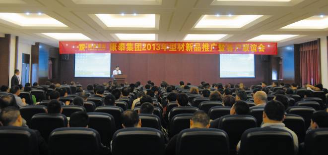 ??? 2013年3月30日,康泰集團(tuán)2013年型材新品推廣暨客戶聯(lián)誼會在集團(tuán)總部五樓多功能會議室隆重召開,本次會議意在為成都、四川、重慶的門窗組裝廠、裝飾公司及開發(fā)單位的眾位好友推薦康泰型材新品,加強(qiáng)經(jīng)銷商與客戶之間的相互交流學(xué)習(xí),全面了解公司的生產(chǎn)實(shí)力、技術(shù)研發(fā)、營銷服務(wù)等相關(guān)領(lǐng)域,特舉辦此次盛會。本次會議以“鑄就高品質(zhì)型材,開拓互惠雙贏新局面”為方針,以提升康泰型材在客戶心目中的認(rèn)知度為戰(zhàn)略目標(biāo),大家各抒己見,出謀劃策,共商康泰型材2013年的發(fā)展戰(zhàn)略。