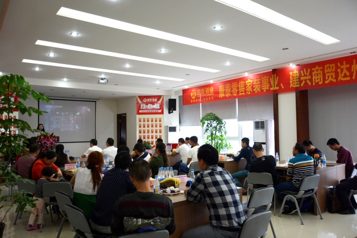 金秋九月,丹桂飄香。9月21日下午15時,康泰零售家裝事業(yè)+達(dá)州建興商貿(mào)達(dá)州區(qū)域?qū)稣猩?、推廣會議在康泰集團(tuán)總部5樓會議室舉行。達(dá)州建興商貿(mào)總經(jīng)理朱宏建,以及康泰集團(tuán)副總裁鄭光鏵、副總裁張文霖,零售事業(yè)部總經(jīng)理趙謙等出席會議。達(dá)州區(qū)域23余戶家裝零售商客戶應(yīng)邀參加會議。會議現(xiàn)場下單客戶19家,占到了參會總?cè)藬?shù)的80%以上,總訂貨款50多萬元,會議取得圓滿成功。