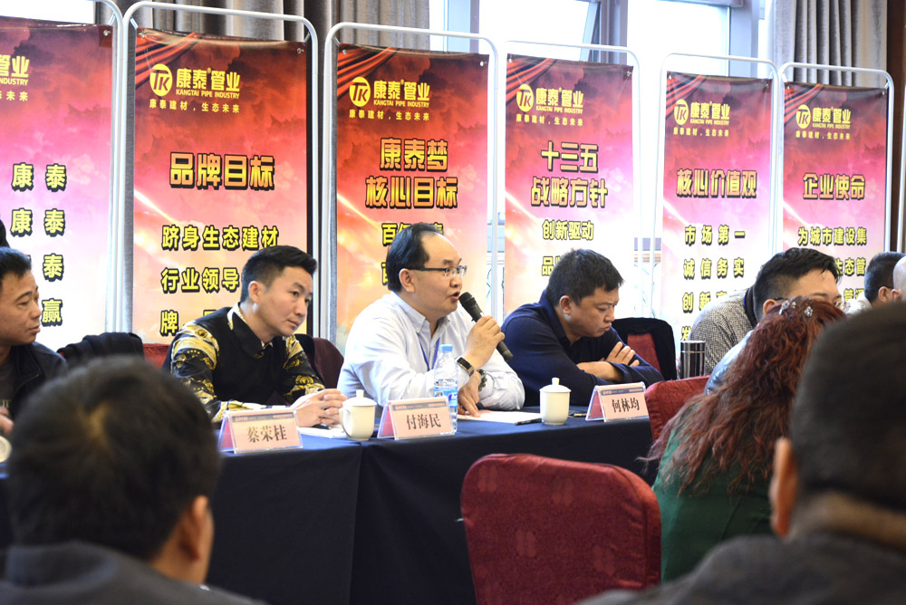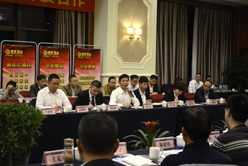 副總裁鄭光鏵在會(huì)上作了題為《轉(zhuǎn)型升級(jí) 深度合作》報(bào)告。從經(jīng)銷商面臨的挑戰(zhàn)、國(guó)家政策導(dǎo)向、行業(yè)前景、康泰發(fā)展目標(biāo)、戰(zhàn)略與目標(biāo)匹配、經(jīng)銷商的定位、經(jīng)銷商深度合作模式七個(gè)方面作了闡述指出,塑膠建材行業(yè)仍然是個(gè)好行業(yè),是個(gè)挑戰(zhàn)與機(jī)遇并存的行業(yè),康泰也在積極做整體管理、統(tǒng)一營(yíng)銷,加快產(chǎn)業(yè)+資本轉(zhuǎn)型升級(jí)。廣大經(jīng)銷商要以康泰為平臺(tái)支撐,積極整合資源,共同應(yīng)對(duì)行業(yè)大洗牌的挑戰(zhàn),實(shí)現(xiàn)合作共贏。