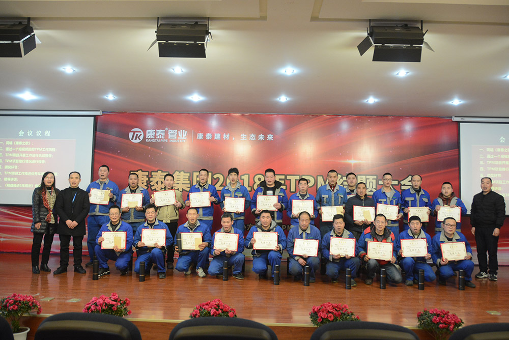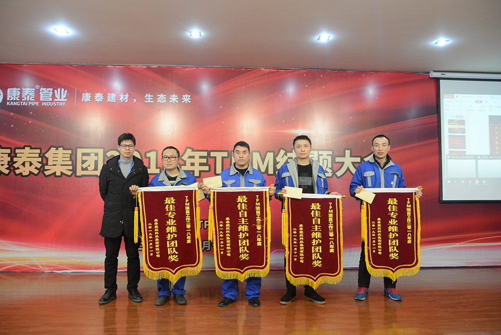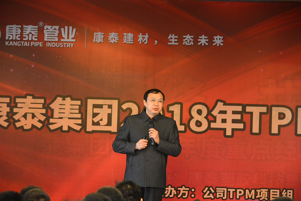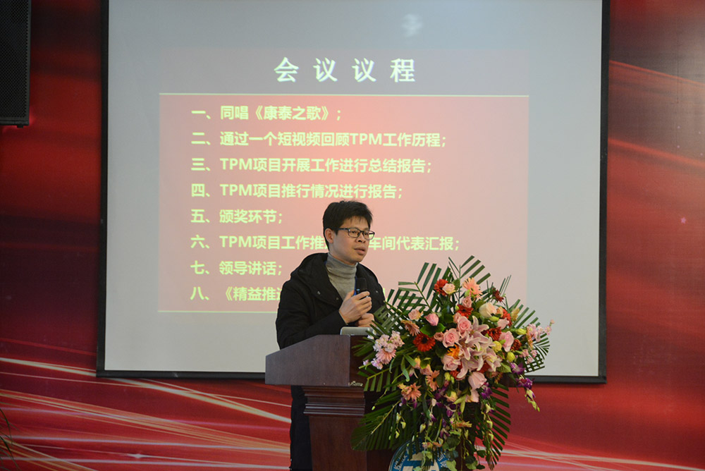 會(huì)議首先通過(guò)視頻回顧了TPM項(xiàng)目的導(dǎo)入、實(shí)施、改善,并對(duì)成果進(jìn)行了展示。隨后,TPM項(xiàng)目組組長(zhǎng)、生產(chǎn)副總監(jiān)李志堅(jiān)作了《TPM項(xiàng)目開展工作進(jìn)行總結(jié)匯報(bào)》。為了提升康泰集團(tuán)在塑膠行業(yè)的競(jìng)爭(zhēng)力,滿足客戶日益多樣化的需求,2017年9月28日,康泰集團(tuán)導(dǎo)入了TPM——全面生產(chǎn)管理體系,圍繞TPM的自主維護(hù)、專業(yè)維護(hù)、現(xiàn)場(chǎng)改善及可視化等開展活動(dòng)。通過(guò)活動(dòng)的開展,生產(chǎn)系統(tǒng)各級(jí)對(duì)于TPM有了深刻的認(rèn)識(shí),車間員工學(xué)到了知識(shí),提升了技能,對(duì)設(shè)備的傳統(tǒng)觀念有了轉(zhuǎn)變。截止2019年1月,現(xiàn)場(chǎng)發(fā)現(xiàn)問(wèn)題7035項(xiàng),整改6590項(xiàng),整改率98% 。建立集團(tuán)設(shè)備預(yù)防性維修保養(yǎng)體系,形成階段性標(biāo)準(zhǔn)化文件8份,設(shè)備故障率下降30% 。