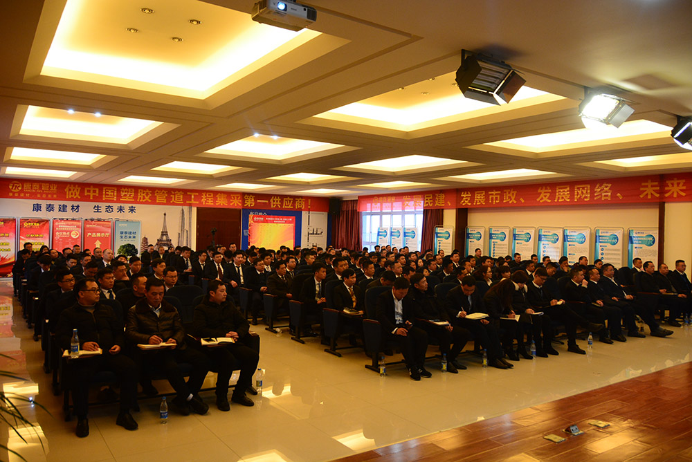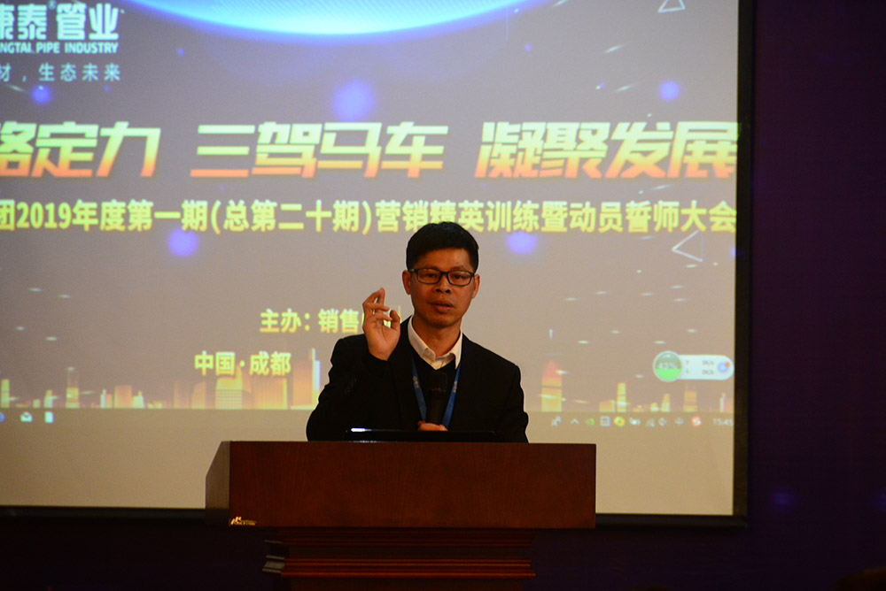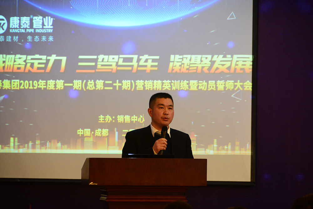 在全場(chǎng)熱烈的掌聲中,林總裁上臺(tái)作了熱情洋溢的新年致辭和動(dòng)員講話。林總裁首先對(duì)集團(tuán)公司在2018年取得的優(yōu)異業(yè)績(jī)向全體銷(xiāo)售人員的付出表示了感謝。林總裁表示,康泰的發(fā)展定位就是做中國(guó)工程集采第一供應(yīng)商,2019年是充滿(mǎn)挑戰(zhàn)的一年,也是為實(shí)現(xiàn)三年目標(biāo)打基礎(chǔ)的一年。我們要充分發(fā)揮三駕馬車(chē)——發(fā)展民建、發(fā)展網(wǎng)絡(luò)、發(fā)展市政的優(yōu)勢(shì),切實(shí)做到品牌強(qiáng)大、技術(shù)強(qiáng)大、網(wǎng)絡(luò)強(qiáng)大、團(tuán)隊(duì)強(qiáng)大,提升公司的核心競(jìng)爭(zhēng)力。